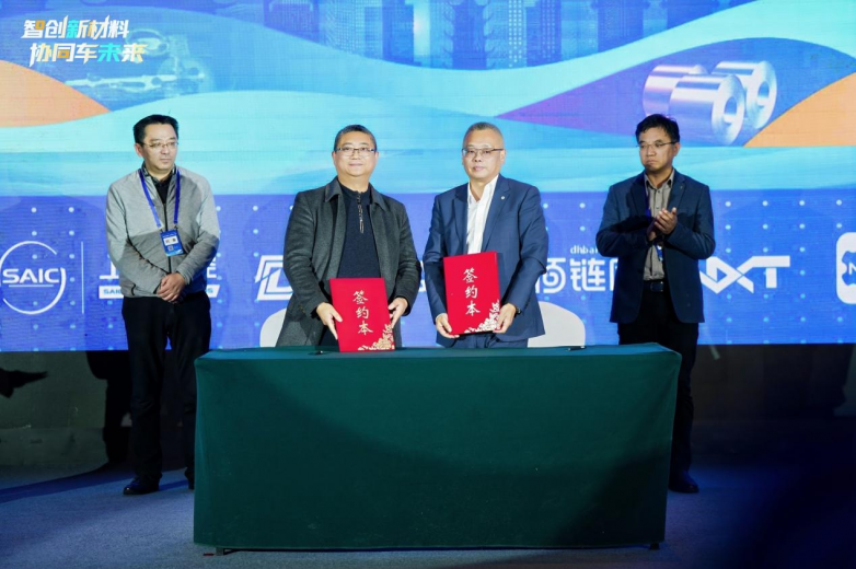为推动创新资源整合与实体项目落地,大会设置了多项签约与揭牌环节。在与会嘉宾见证下,聚隆科技、中金润恒分别与东华汽车实业有限公司供应分公司签署合作协议,进一步强化在轻量化材料与供应链协同方面的合作。会上,“新能源汽车数据跨境流通联合实验室”正式揭牌成立,该实验室由玄武区政府与南汽集团共同推动,致力于构建安全合规的数据流通机制,为汽车新材料研发与应用提供支撑。