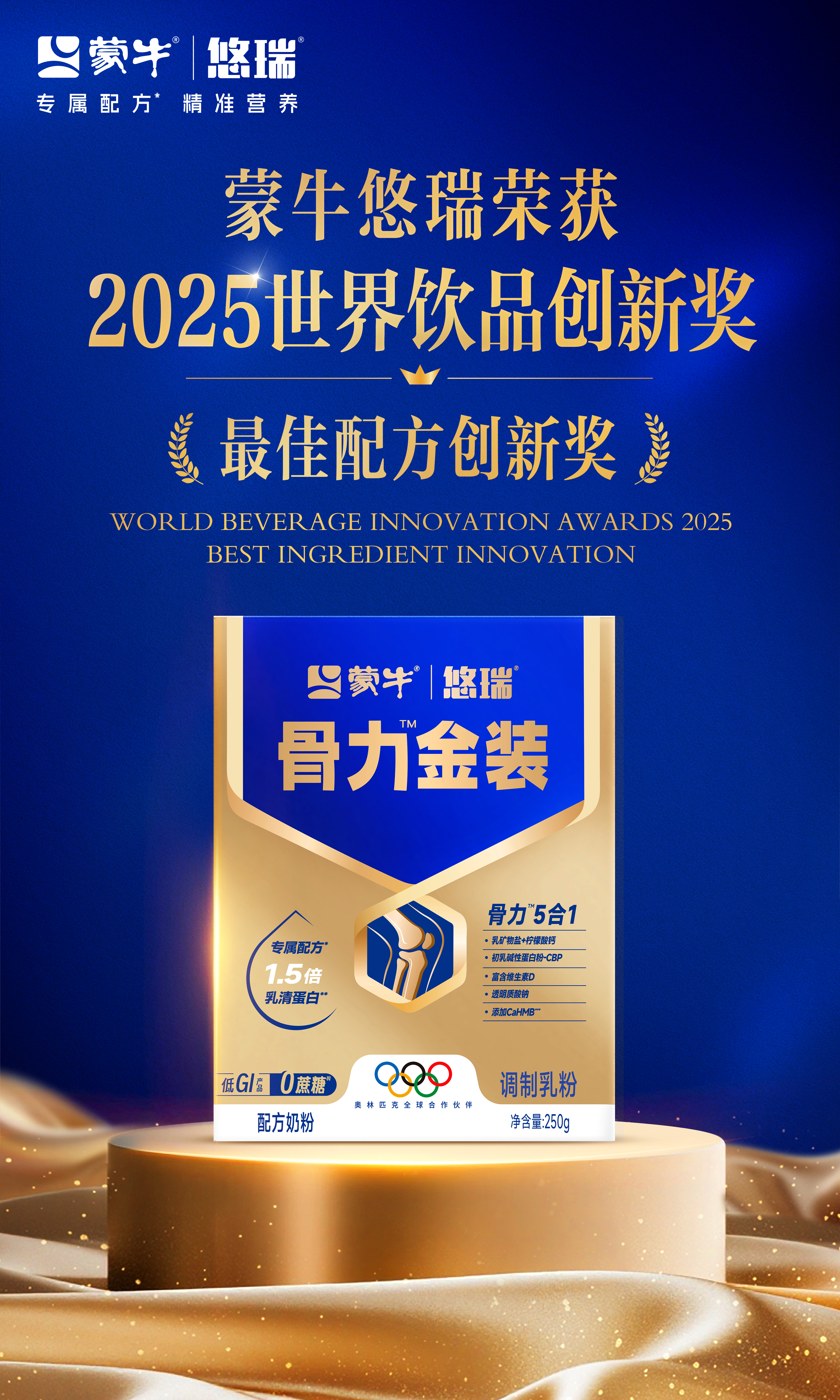 针对中老年人骨骼、关节、肌肉等方面的健康需求,蒙牛悠瑞推出科学配方产品“悠瑞骨力金装”,精准添加N-乙酰氨糖、专利技术提纯CaHMB+专利应用益生菌、1.5倍CBP初乳碱性蛋白粉等营养成分,实现“骨关肌”协同呵护。该产品凭借其创新性与针对性,先后荣获2025世界饮品创新奖“最佳配方创新奖”及亚太功能食品行业大奖“年度中老年行动营养产品奖”等荣誉,彰显了企业凭借科技之力守护银发健康的切实行动与真挚诚意。