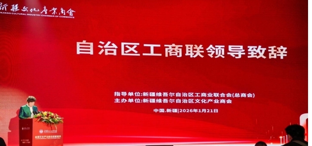 自治区工商联副主席、兵团工商联党组成员、副主席朱桂花致辞时强调,文化产业是推动经济社会高质量发展的重要引擎,自治区工商联(总商会)将全力支持新疆文化产业商会发挥桥梁纽带作用,希望商会紧密围绕“文化润疆”工程,引导广大文化企业守正创新,深入挖掘新疆丰厚的历史文化资源和多彩的民族文化瑰宝,积极培育新型文化业态,着力打造一批兼具新疆特色与全国影响力的文化品牌,为构筑中华民族共有精神家园、实现社会稳定和长治久安总目标作出实质性贡献。